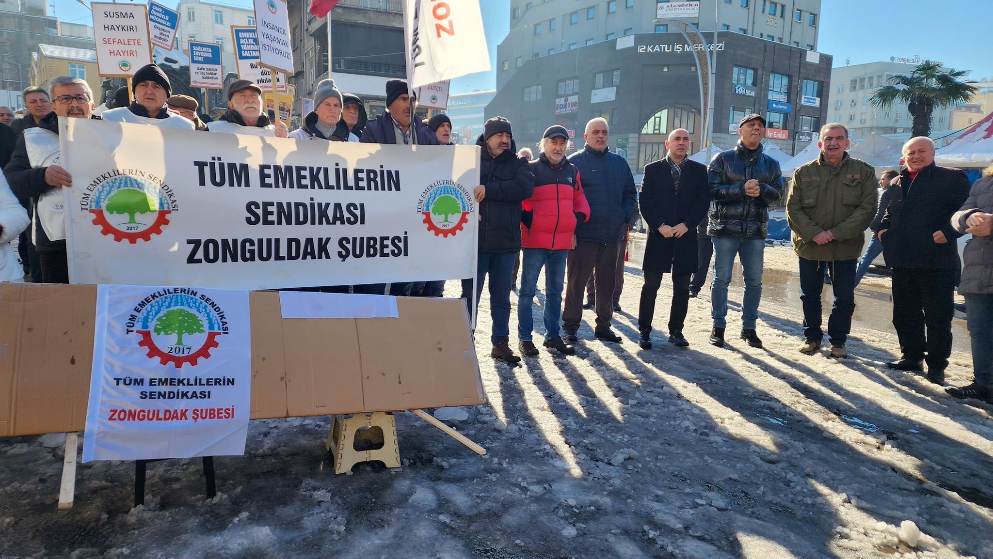 Tüm Emeklilerin Sendikası (Tüm Emekli-Sen) Zonguldak Şubesi üyeleri, emeklilerin yaşadığı ekonomik sorunlara dikkati çekmek amacıyla kent meydanında eylem yaptı.